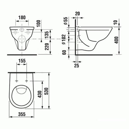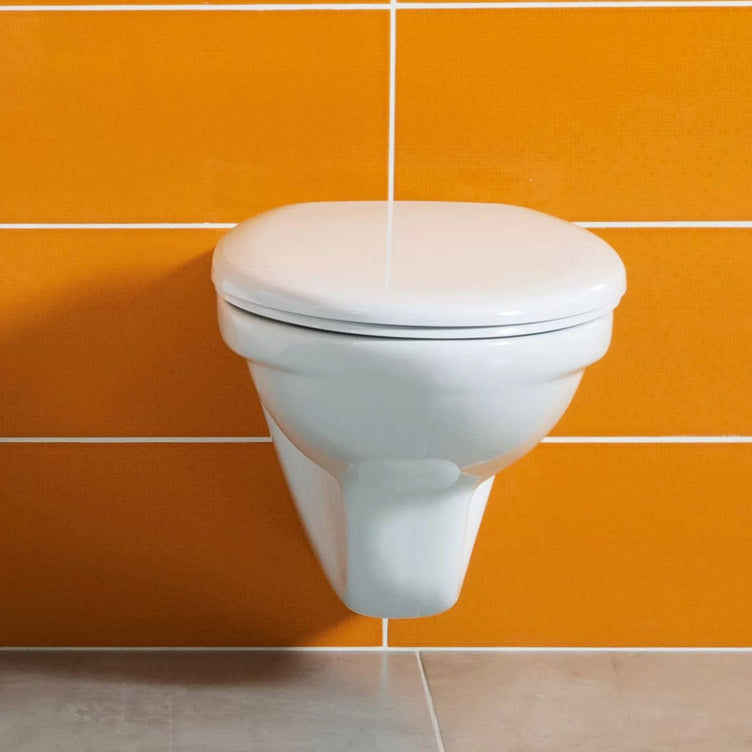Stilrent og enkelt vegghengt toalett i klassisk design i sanitær porselen. Boltavstand 180 mm. Anbefalt spylemengde er 3/6 liter.