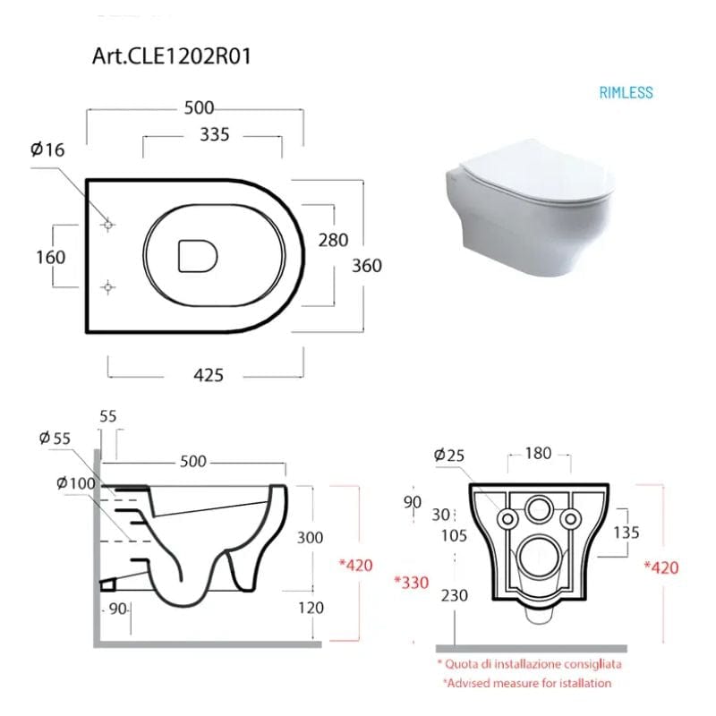 Clear er et moderne vegghengt toalett uten spylekant og er derfor vedlikeholdsvennlig. Toalettsetet har soft-close i tillegg til quick release toalettsete. Toalettet leveres komplett med både toalettskål og toalettsete.