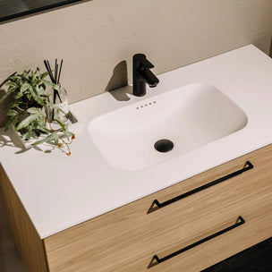 Den flate bunnen gir et stramt og moderne uttrykk, samtidig som servanten har et naturlig fall som leder vannet effektivt mot avløpet. Servanten leveres med kranhull og er tilpasset Korsbakken sine baderomsinnredninger i 60 cm med standard dybde.