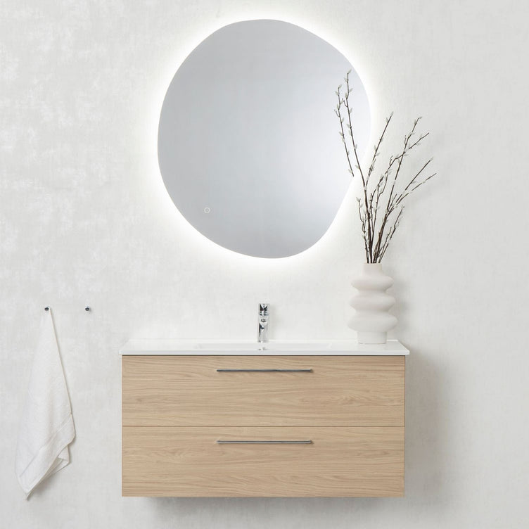 Korsbakken Saturn er en heldekkende servant i porselen, utviklet for bruk på underskap og tilpasset baderomsmøbler med standard dybde. Den buede kummen er formet for å lede vannet effektivt mot avløpet og redusere at vann blir liggende igjen etter bruk.
