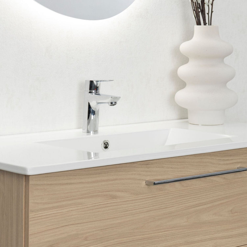Servanten leveres med overløp og medfølgende overløpsring i krom utførelse. Porselensoverflaten er glatt og lett å holde ren, noe som gjør servanten godt egnet for daglig bruk i baderom.