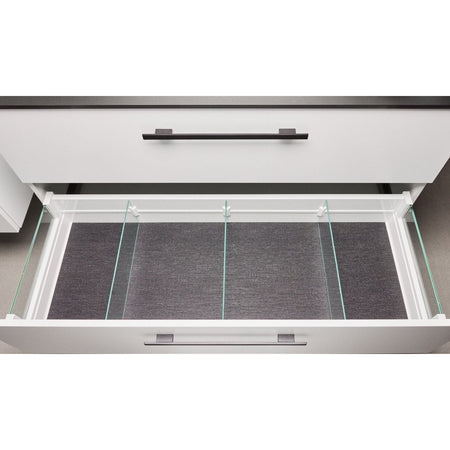 Linn Bad antisklimatte i hvit eller svart utførelse, for standard og grunn skuffedybde. Praktisk ekstrautstyr til servantskapet som gjør at tingene dine holder seg i ro. Leveres i alle størrelser, til 160cm servantskap kjøper du 2stk 80cm for øvre/nedre skuff. Pris per stykk.