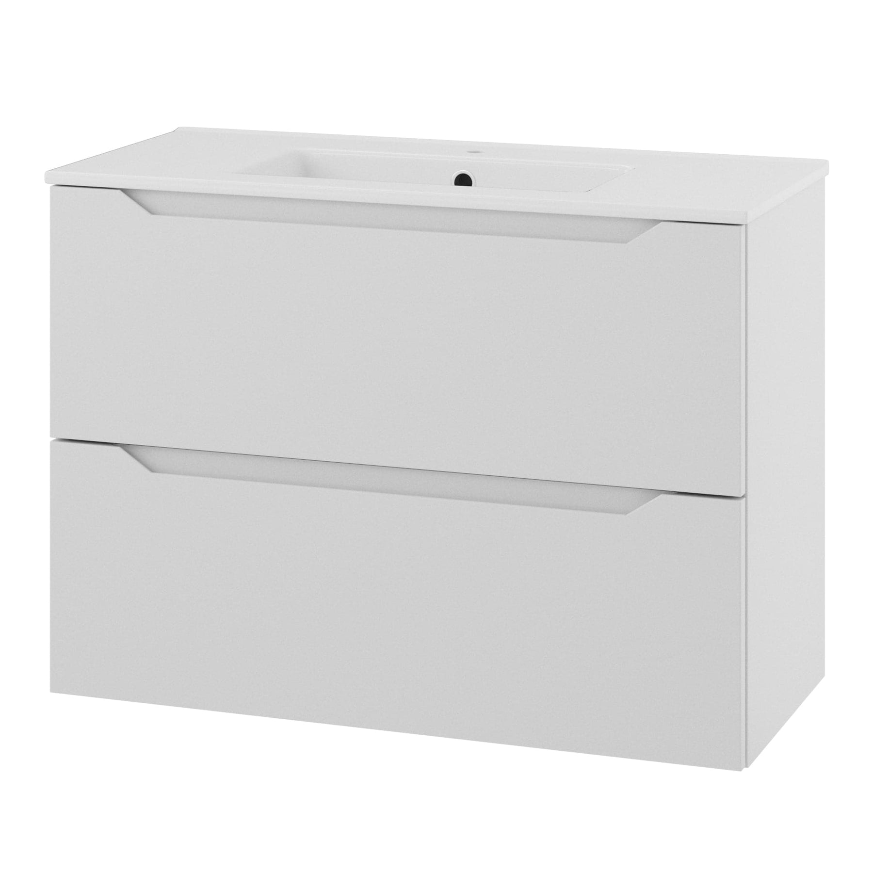 Emma Smal er en plassbesparende møbelserie med et standard utvalg og mange kombinasjoner. Serien har integrert grep og kombinerer det beste av design med en praktisk funksjonalitet. Du kan velge Emma baderomsmøbler i svart matt, hvit matt og eik farge.
