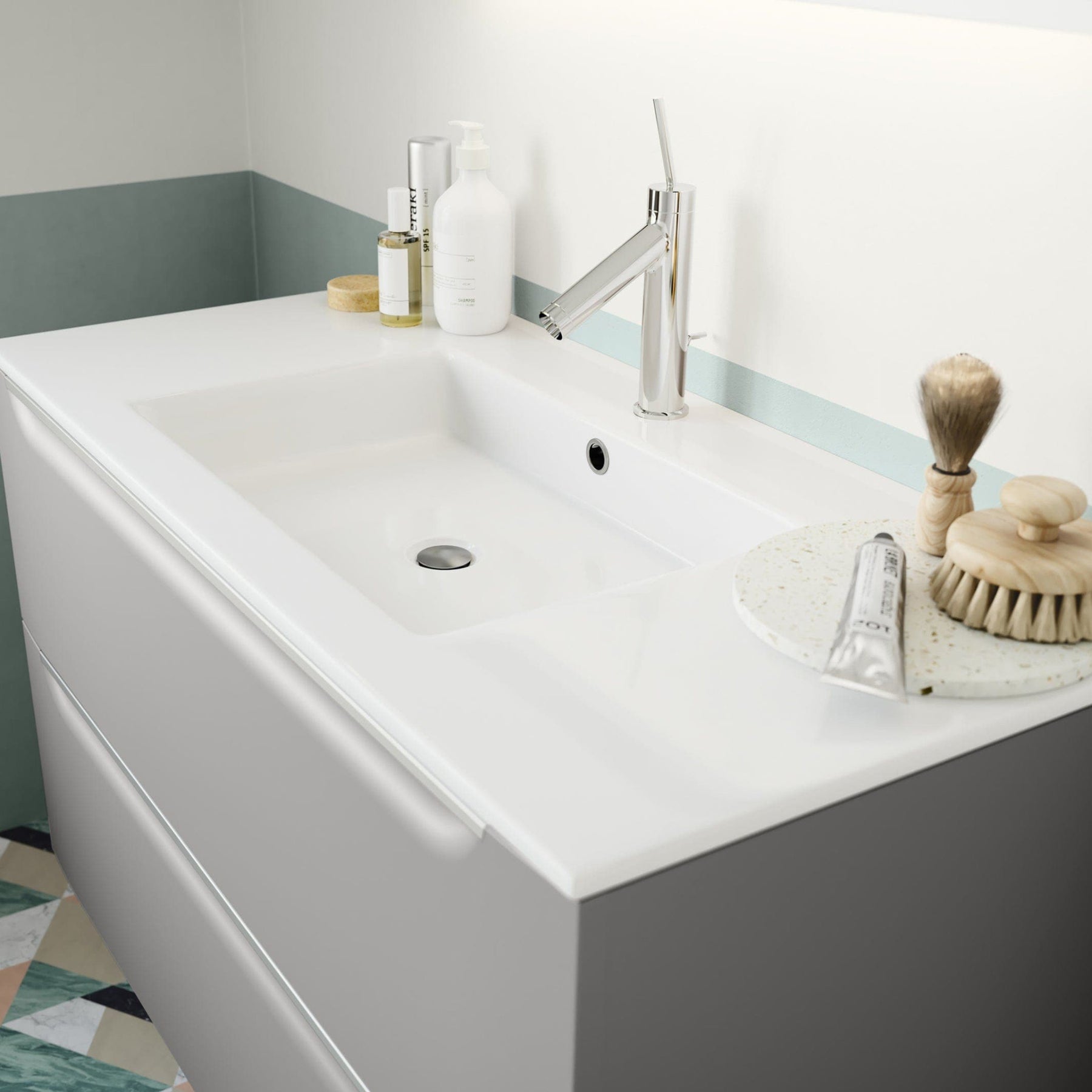 Freya er en trendy, moderne og svært slank servant med god avsettingsplass og stram, kantete kulp.