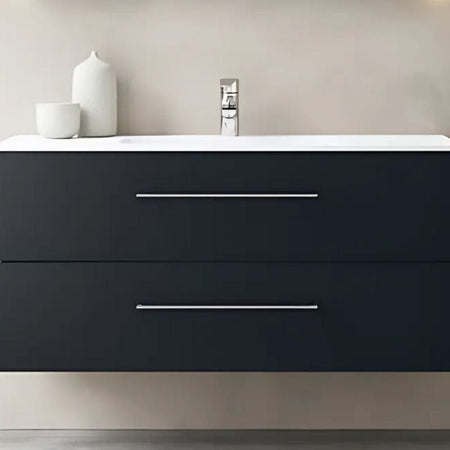 Linn Bad Hilde grep er stilrene og funksjonelle håndtak designet for å gi baderomsmøblene dine et moderne preg. De er tilgjengelige i størrelsene CC92 og CC448, og den svarte finishen skaper et elegant uttrykk som passer både klassiske og moderne baderom.