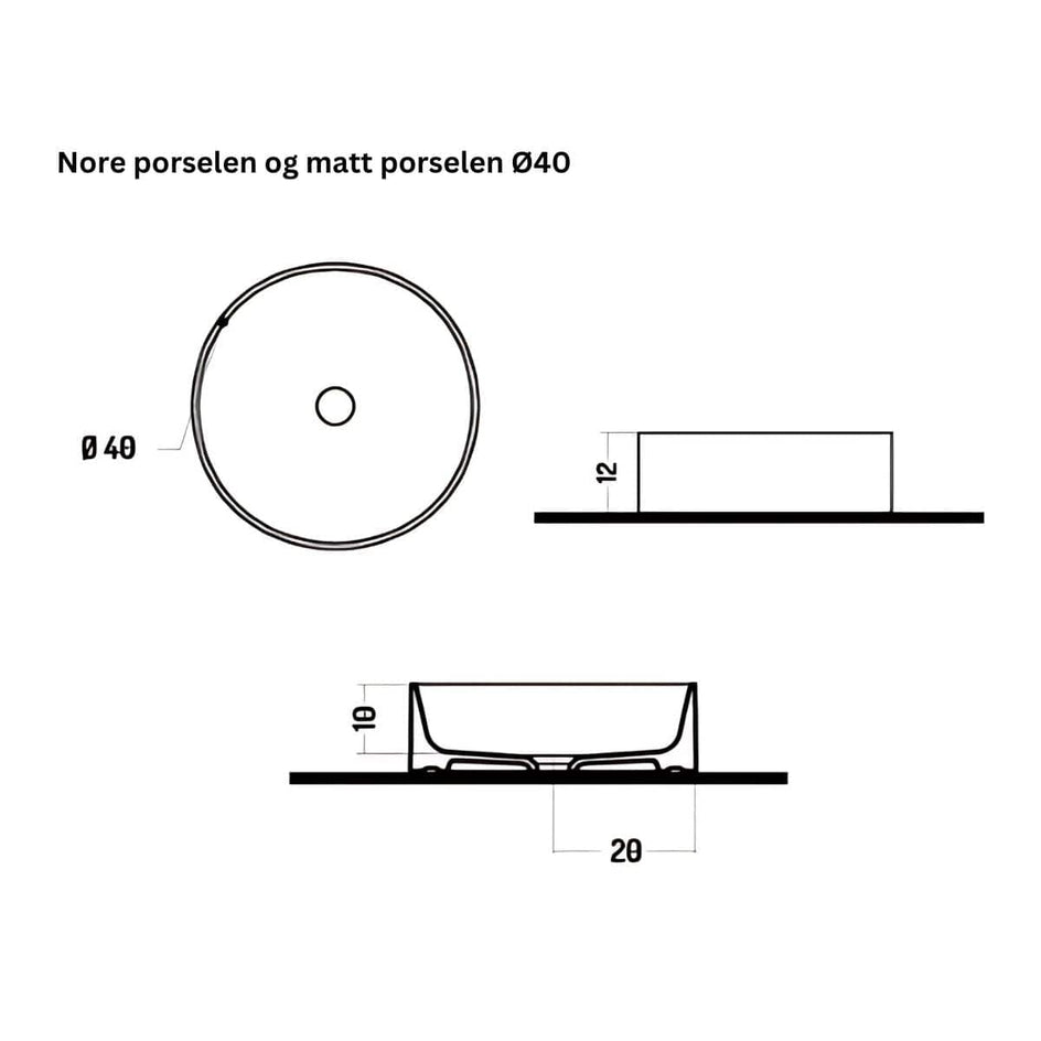 Nore toppmontert servant for benkeplate - porselen og matt porselen