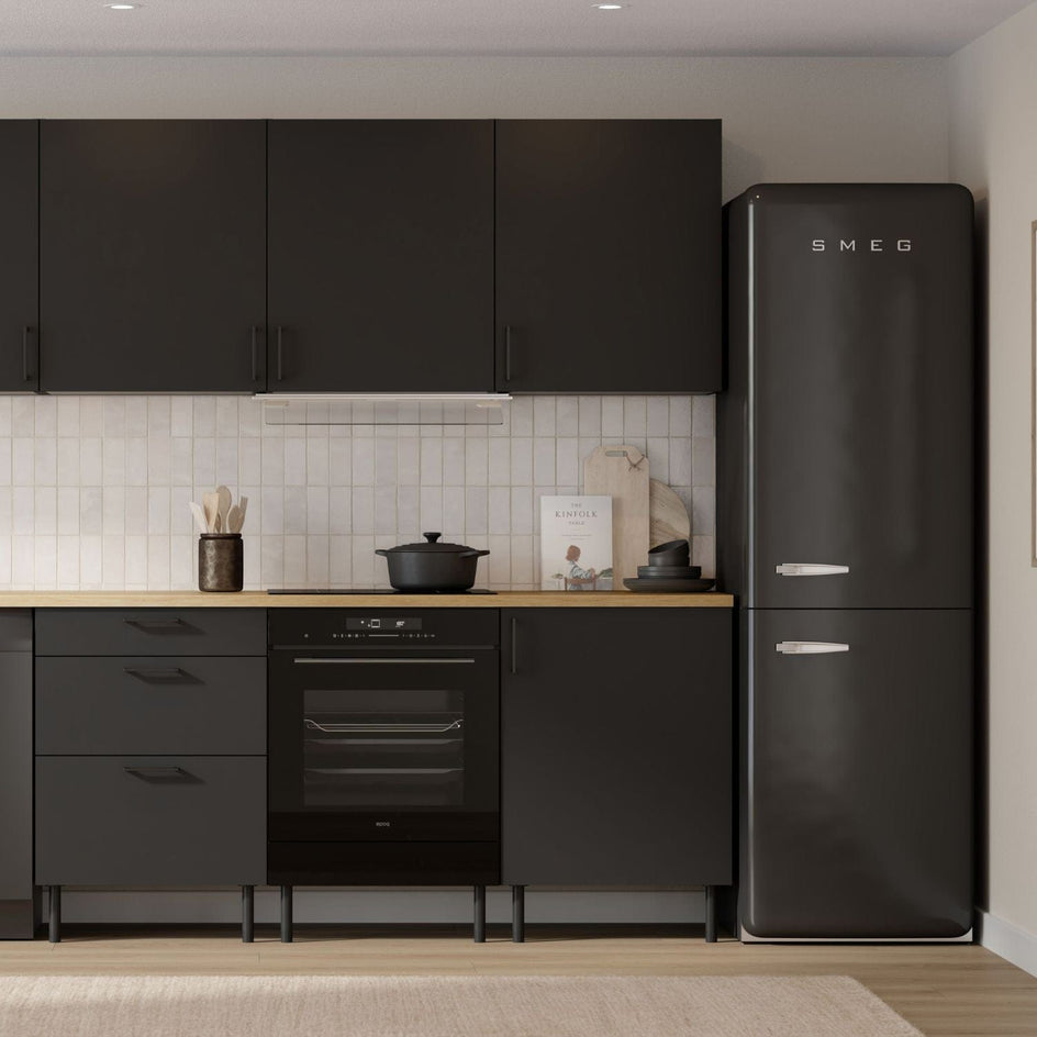 SKINNER, HENGSLER OG ANNET TILBEHØR Trådkurver i høyskap er lakkert stål. Hyller i skap og høyskap er melaminbelagt sponplater. På våre skap med dører er det hengsler med integrert demping som standard. Skuffer har skinner med delte rulleforlengere uten demping som standard. Skuffer med demping (valgfritt) har delte uttrekk som sørger for at skuffen lukkes mykt og lydløst. Integrerte skuffesleider er selvsmørende og trenger ikke å oljes på nytt.