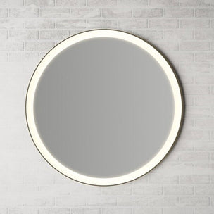 Linn Bad Vange speil med LEDlyskant og lekker farget ramme. Dimmerknapp på speilflaten. Rammen leveres i hvit matt og svart matt farge.
