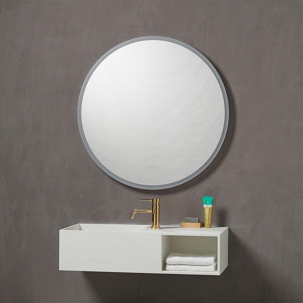 Rundt speil med lys bak frostet ramme. Med MultiWhite lysteknologi som lar deg justere lysstyrken fra varmt til kaldt hvitt lys. Dette er perfekt for å endre stemningen i rommet. Det kalde lyset forhindrer produksjon av melatonin og gir en forfriskende følelse på morgenen, mens det varme røde lyset vil la deg få en naturlig overgang fra dag til natt.