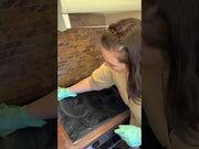 - Komfyr: fjerne fett og fastbrente rester i ovnen og glasset på komfyren, rengjøre induksjons- eller keramikktoppen
