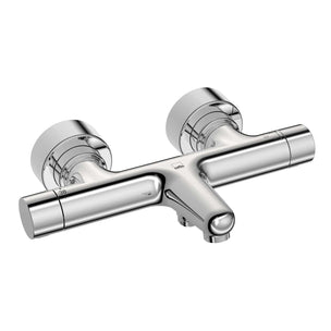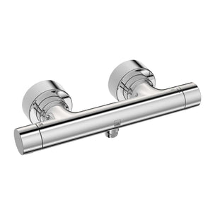 Termostat kar - og dusjkran. Temperatur rattet er utstyrt med sperreknapp ved 38 ° C for å hindre skålding. Med EcoFlow kontroll. Kranen har smussfilter og tilbakeslagsventiler.