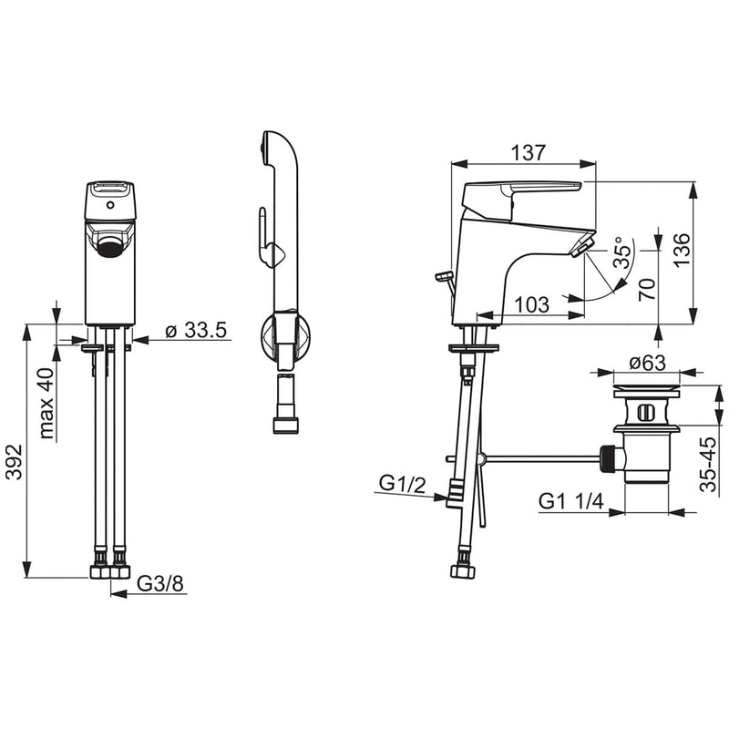- Byggehøyde, undersiden av kranutløp: 70 mm
