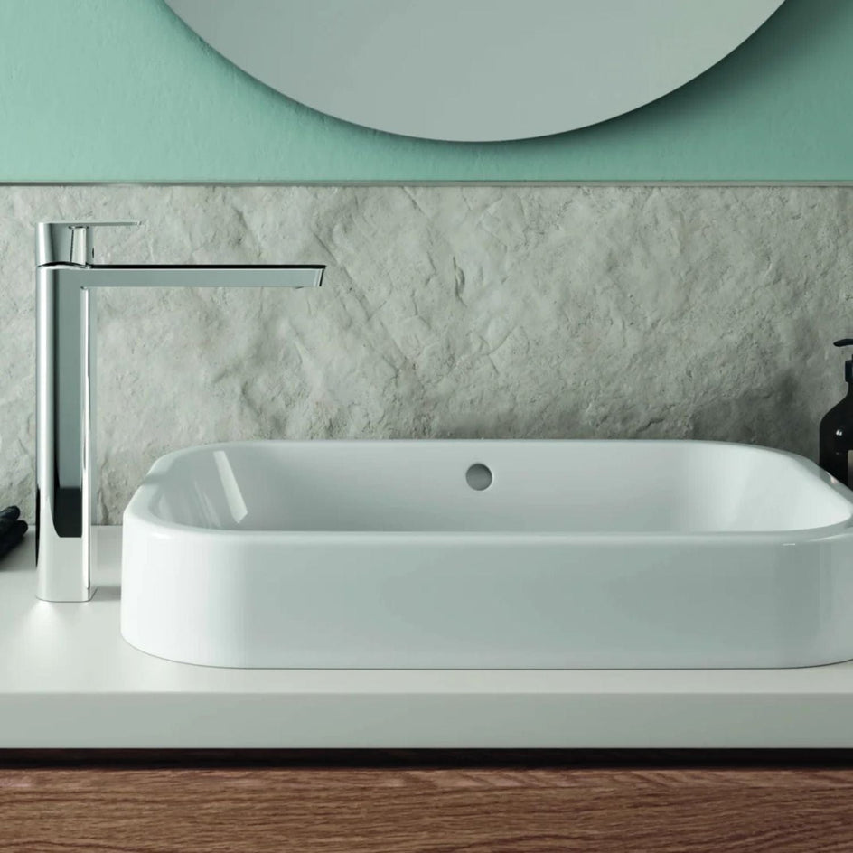 Skjult strålesamler som ikke forstyrrer det rene designet, som kan vinkles for å unngå vannsprut. Høy servantkran som er velegnet til bolleservanter.Tekniske data