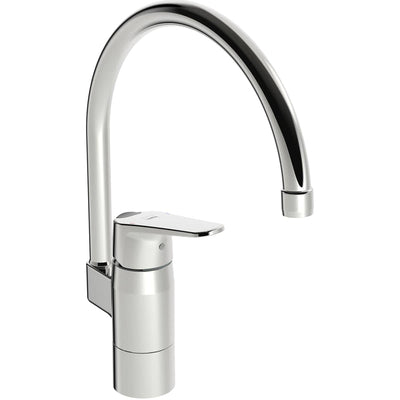 Kjøkkenkran med høy svingbar tut, strålesamler og keramisk avstengning for oppvaskmaskin (ON/OFF). Tutens svingradius er fabrikkinnstilt på 120° (kan begrenses til 40–80°). Vendbar sokkel som gjør at tuten monteres bak, til høyre eller venstre på krankroppen ved installasjon. Hendelen er utstyrt med en økoknapp som kan begrense vannmengden og temperatur. Funksjonen oppheves enkelt ved trykke på knappen. Sikker i bruk og vannbesparende.