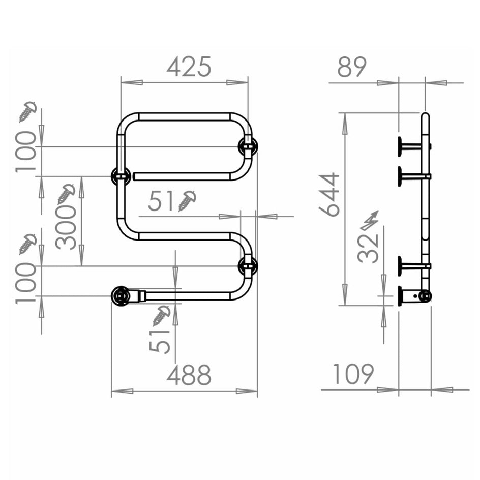 Klassisk design, enkel å slå på/av ved hjelp av innebygd allpolet bryter med indikatorlampe. • Klassisk form med bøyde rør. • Ledning (1,5 m) og støpsel for kobling til stikkontakt (gjør-det-selv-montering). • Svingbart veggfeste – kan tilkobles i ethvert hjørne. • Lavt strømforbruk • Høy kvalitetsfølelse og overflatefinish. • Innebygd el-varmekabel. Uavhengig av VVS/VVC. • Kan utstyres med ekstern strømregulator.