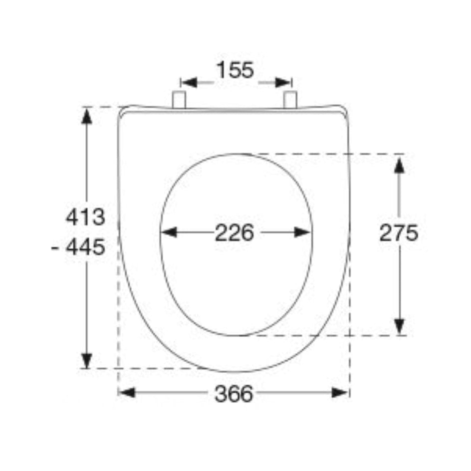 SPJELDSETT (gjelder kun toalettseter med myk lukking): Hydraulisk spjeld med spjeldhus i rustfritt stål og termoplastiske plastdeler.