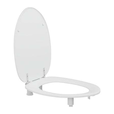 Et ergonomisk utformet toalettsete som passer for de fleste. Sideveis forflytning er enkel fordi setet er flatt. Trekket er behagelig å sitte på, og i oppreist stilling gir det god ryggstøtte. Toalettsetet er hevet 2" for å gjøre det lettere å sette seg ned og reise seg.