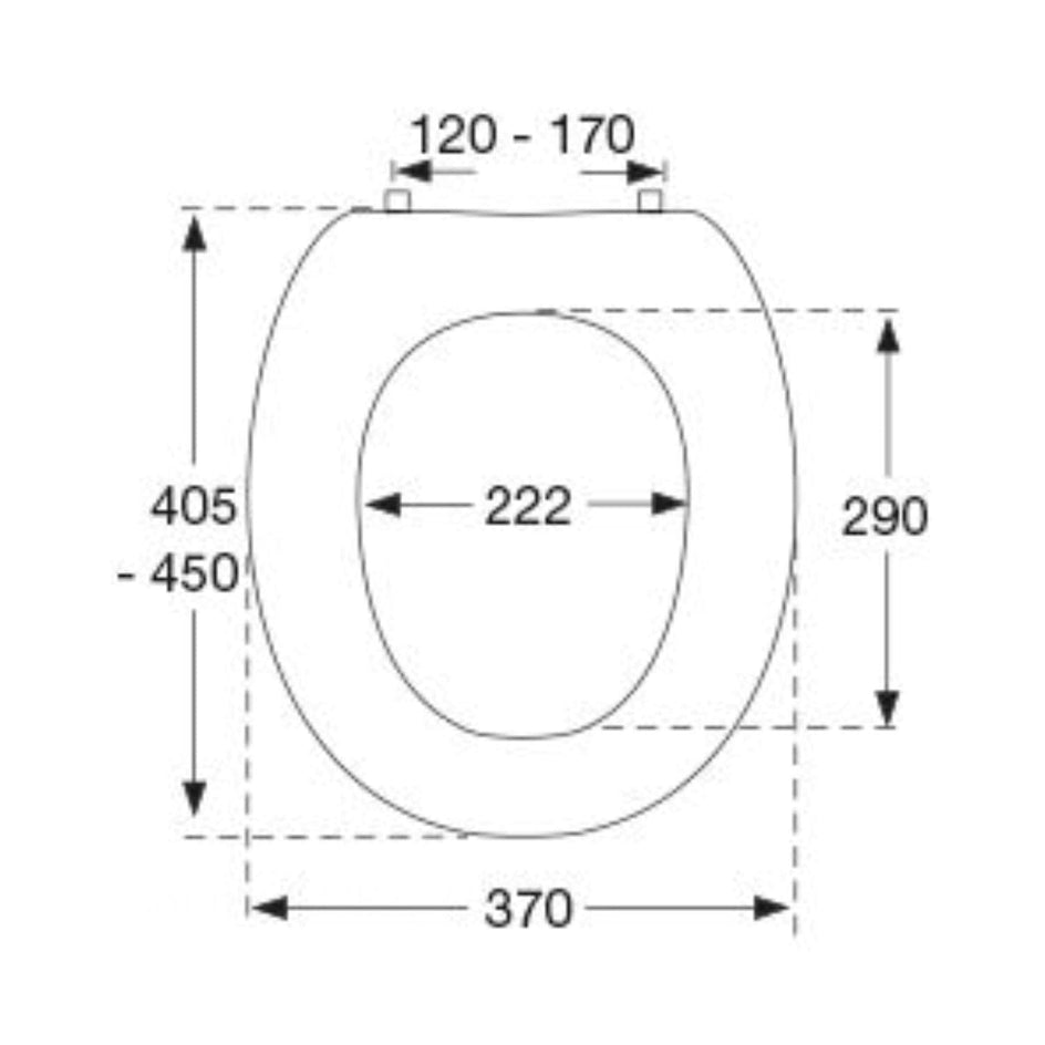 Toalettsete Dania med stabiliserende buffere okk, hevet 2", inkl. sprutbeskyttelse og hevet tverrstanghengsel