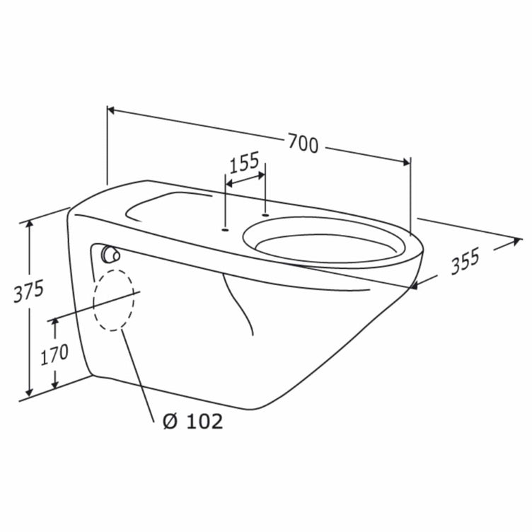 Toilet, væghængt, afstand væg til front: 700 mm.