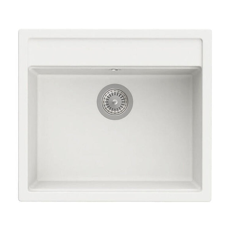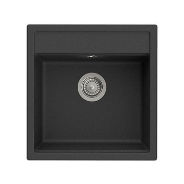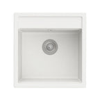 Kolleksjon av Quarzex® kjøkkenvasker preget av en rekke utførelser og en praktisk hylle på toppen, som former firkantede produkter som er veldig enkle å installere.