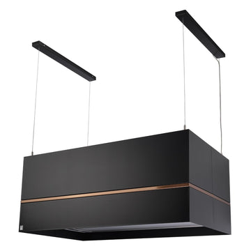 Stripe produseres i stål og leveres i valgfri farge- med dekorlist i valgfri PVD-metall eller farge inkludert i prisen. Wire-oppheng er inkludert og monteringsbeslag mot taket leveres i samme utførelse som grunnfargen på kjøkkenhetten. Stripe passer kun for resirkulasjon.