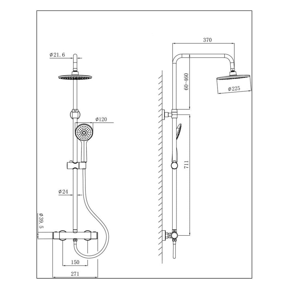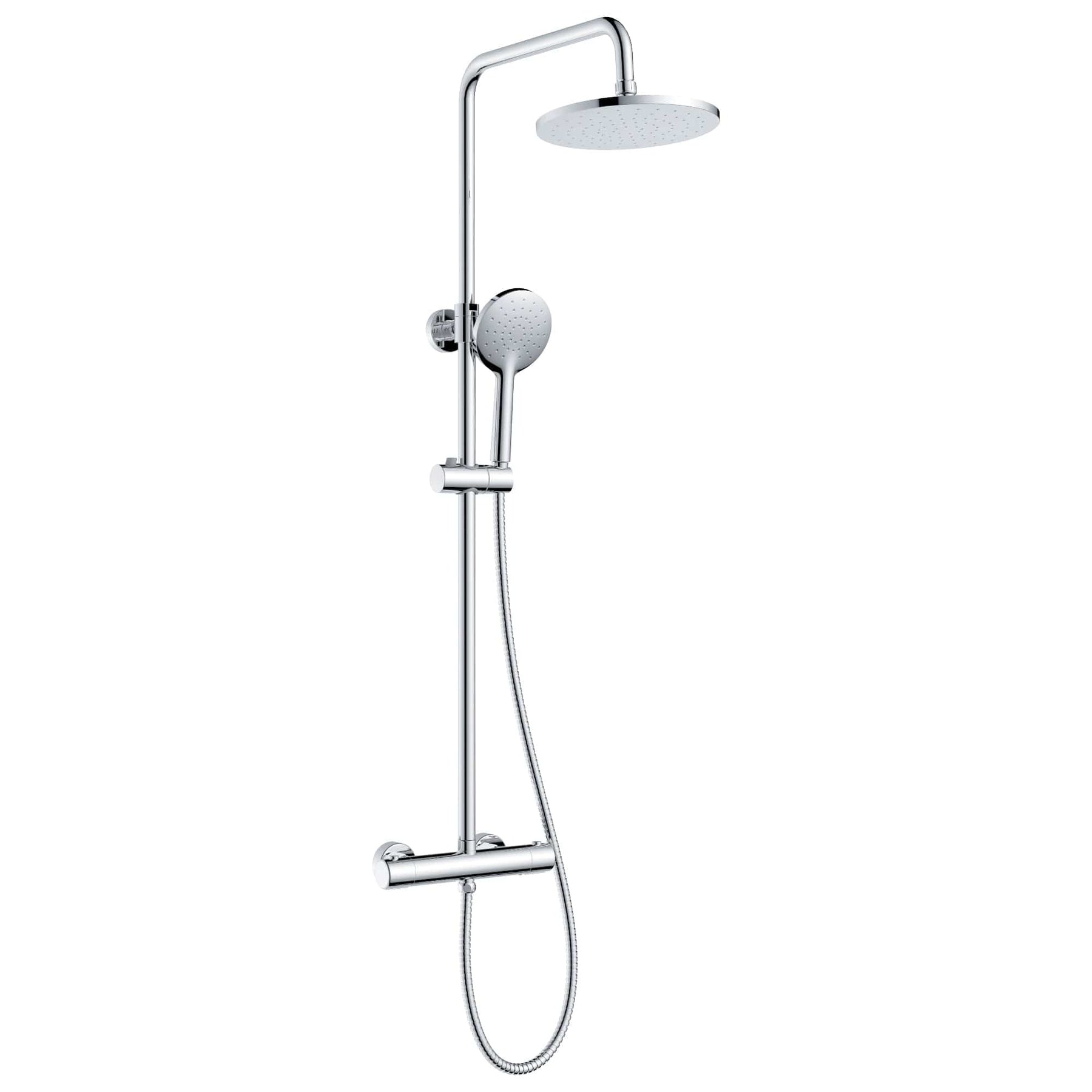 Rio Rainshower er et lekkert og robust dusjsett med termostatbatteri. Takdusjen har mulighet for høydejustering på takdusj og hånddusj.