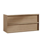 Møbelet har integrerte grep i heltre eik og skapene har demping på både skuffer og dører.