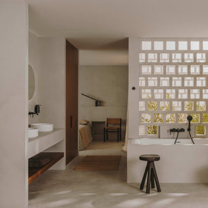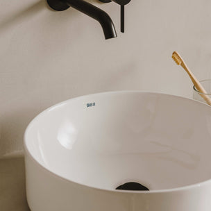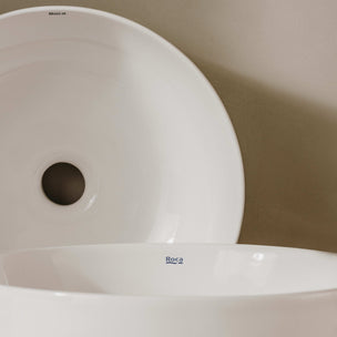 Frittstående servant i stilren matt hvit Solid Surface. Avrundet rektangulær form med en sjenerøs overflate og et mykt, minimalistisk formspråk. Hver servant er håndlaget og har en unik karakter. Bunnventil kan kjøpes som tilvalg.