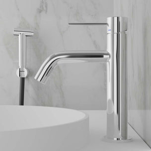 Blandebatteri med rette og rene linjer i en slank utførelse. Formgitt med et minimalistisk formspråk i tidløst design. Utstyrt med kvalitetskomponenter som sparer vann og opprettholder en perfekt tilpasset vannstrøm.