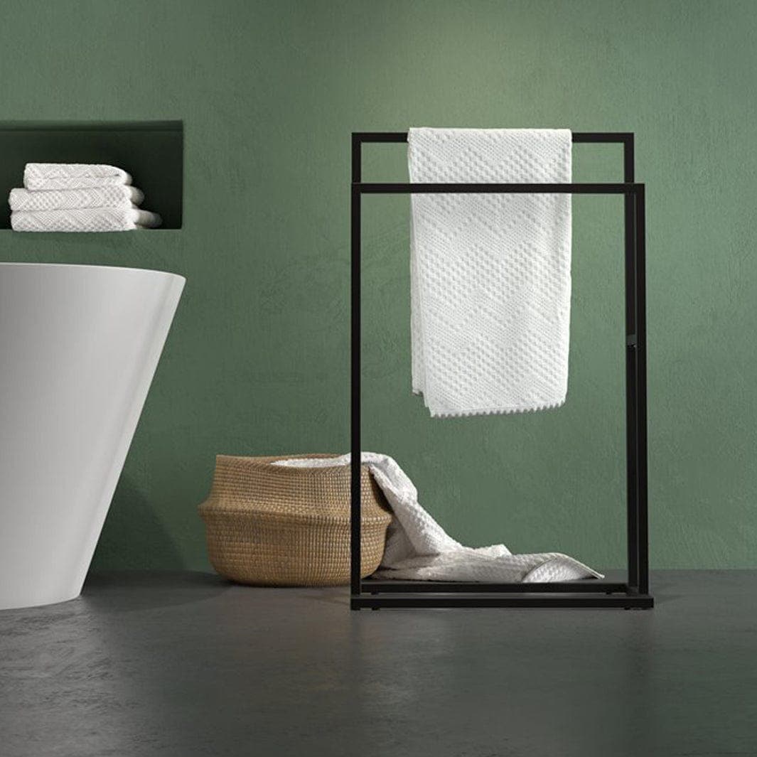 Sealskin Carrè frittstående / gulvstående håndklestativ, sort eller hvit matt. En industriell design med skandinavisk touch. Denne håndklestangen fra Sealskin fanger alle blikk. Takket være de praktiske oppbevaringsløsningene kan du enkelt lage mer plass til håndklærne dine.