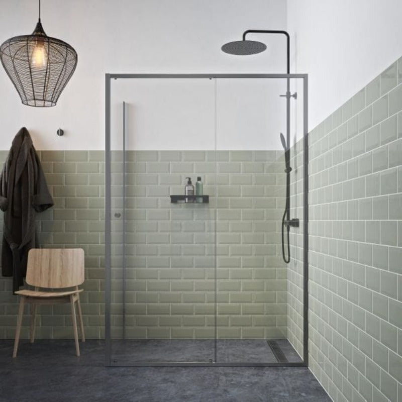 Sealskin Contour skyvedør med sidevegg 120/140x90 cm, 200 cm høyde, 6 mm klart herdet glass.