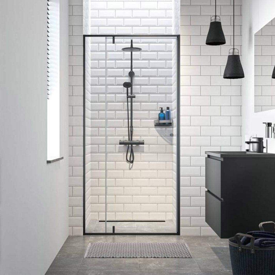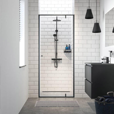 Svingdøren i ett stykke fra Contour-serien for plassering i alkove gjør ekte kvalitet tilgjengelig for alle. Det minimalistiske rammeverket bringer to verdener sammen: En solid konstruksjon og en minimalistisk, transparent stil. Det 6 mm tykke herdede glasset har et antikalk-belegg som sørger for at dusjveggen holder seg klar lengre. Døren henger ikke direkte på veggen, så du kommer ikke til å treffe en radiator eller annet tilbehør med den. Den solide matte, sorte finishen gir baderommet ditt et lekkert designelement.