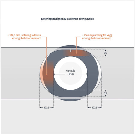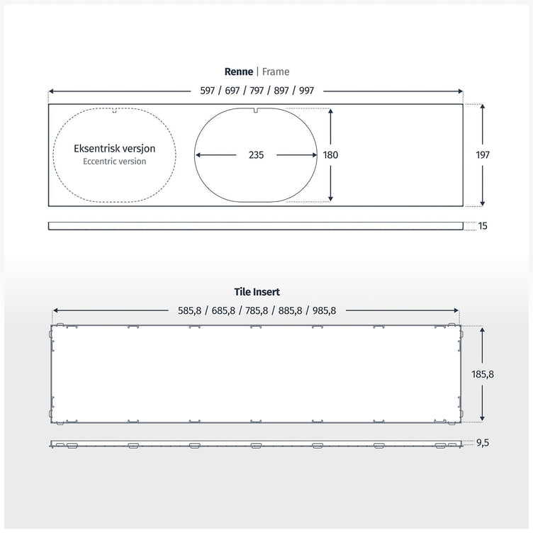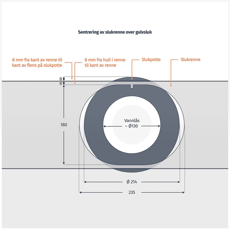 Slukrennene består av to komponenter; en renne og en tile insert, som passer på ethvert universalsluk. Det er jordingspunkt integrert i rennen.