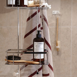 SIDELINE dobbel dusjkurv, rett modell, i polert krom. Smedbos dusjkurver ruster ikke, da de er lagd i massiv messing. Skjult innfestning.