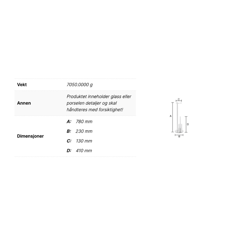 - Høyde: 780 mm
