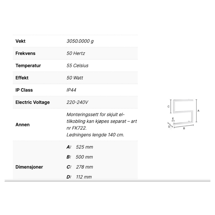 Smedbo Dry FK707 S-Modell Håndkletørker