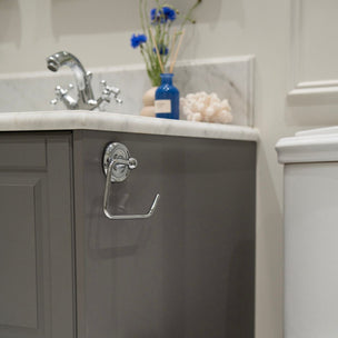 Nytt i vårt sortiment er vår unike toalettpapirholder med hylle. Den er inspirert av det faktum at stadig flere tar med seg mobiltelefonen inn på badet, og dermed så vi et behov. Hyllen er et praktisk sted å oppbevare små baderomsartikler eller dekorative elementer.