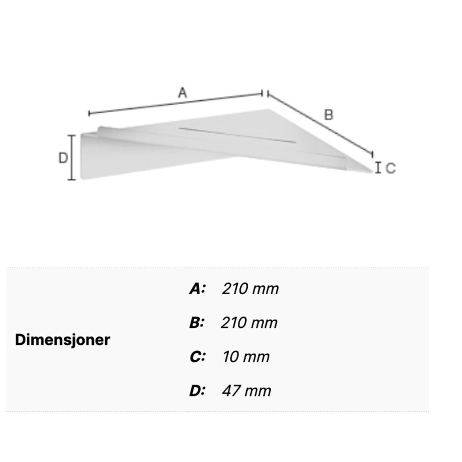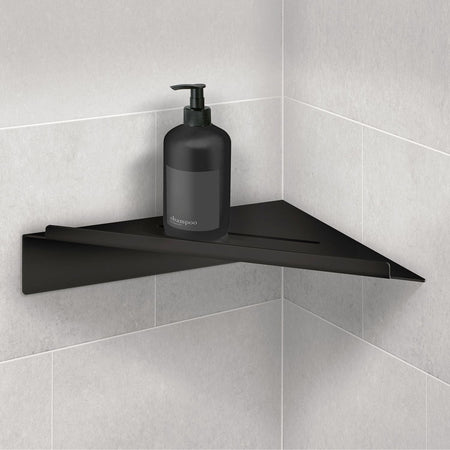 SIDELINE hjørnedusjhylle, selvklebende. Svart/Kromet rustfritt stål. 210 x 210 mm. Veggplate høyde 47 mm.