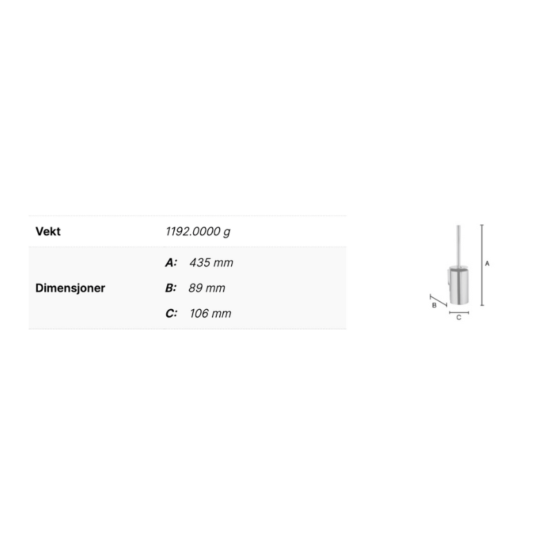 POOL WC-børste i polert rustfritt stål. Veggmontering. Høyde 435 mm.