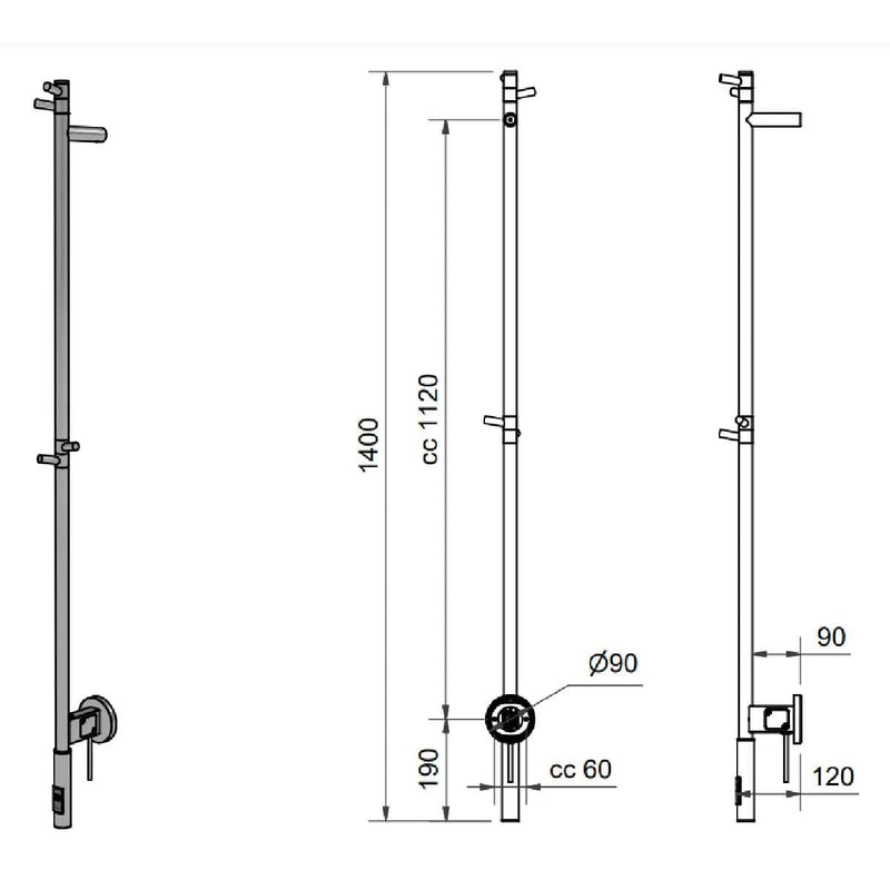 - Elektrisk håndkletørker for vertikalt hengte håndklær