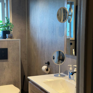 Funksjonell forstørrelsesspeil. Alle skjønnhetsinteressertes beste venn. Et perfekt tilvalg for deg som vil gjøre sminkingen fullkommen. Svedbergs Flattery sminkespeil passer alle speilskap, har 5x forstørrelse og en diameter på 15 cm.