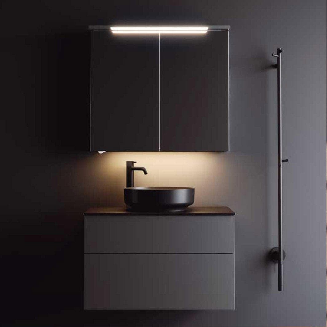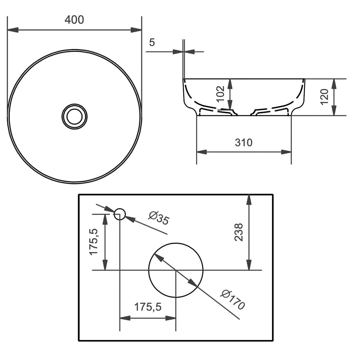 Toppmontert på benkeplate med minimum dybde 45 cm, i kombinasjon med frittstående servantkran.