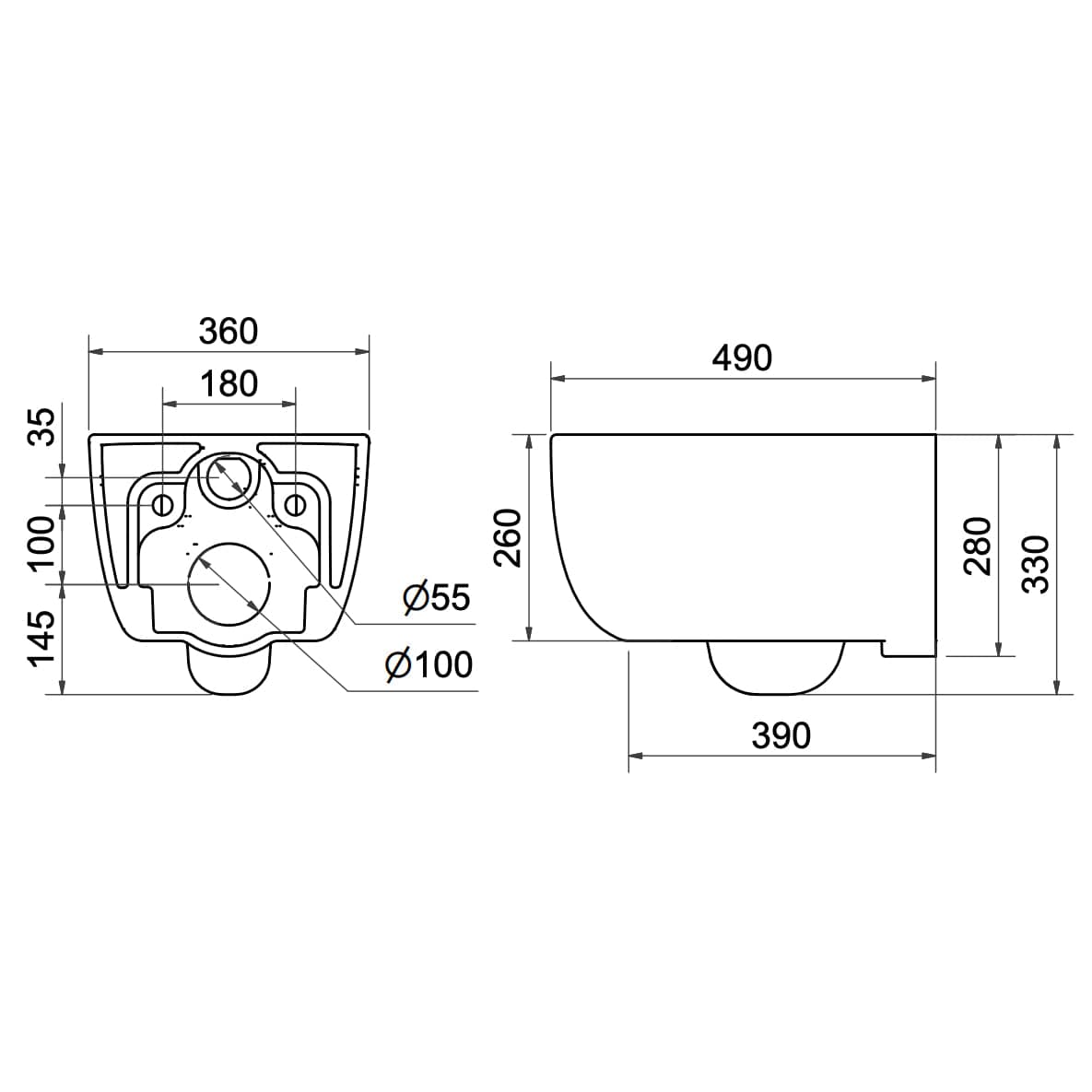 - 90770 Svedbergs Alta Rimless veggskål med slim toalettsete svart matt