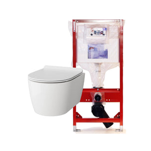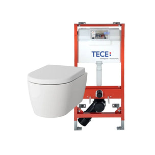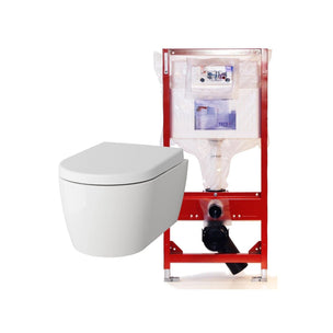 Komplett pakke - få med toalettsisterne, veggtoalett og toalettsete med mykdemping og hurtigfeste.