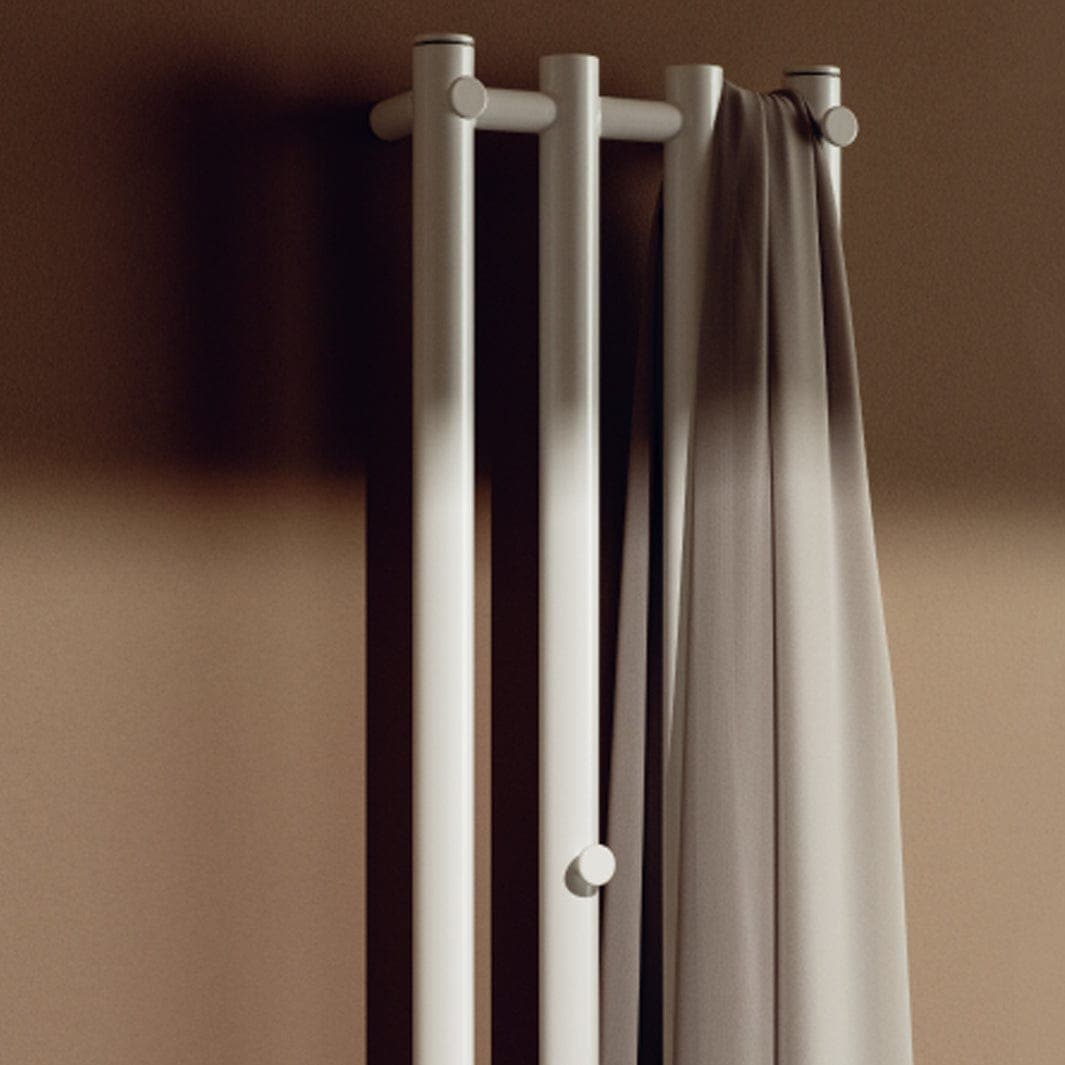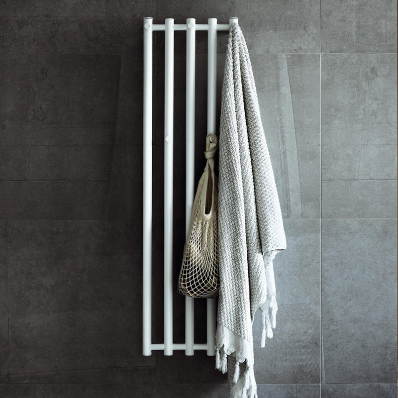 Sigyn vannbåren håndkletørker i rundt formspråk. Passer mindre rom med vertikalt hengende håndklær.