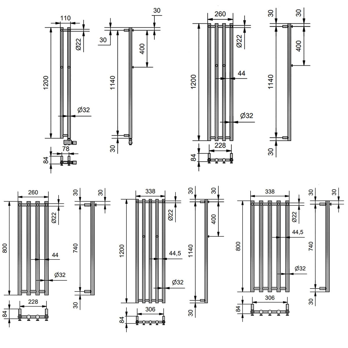 - Viktig! I bredde 11 cm må du velge mellom elpatron eller ventil, det går ikke an å kombinere