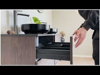 - Mykstengende skuffeskinne med fullt uttrekk fra Grass (skuffen kan trekkes ut i hele sin lengde).