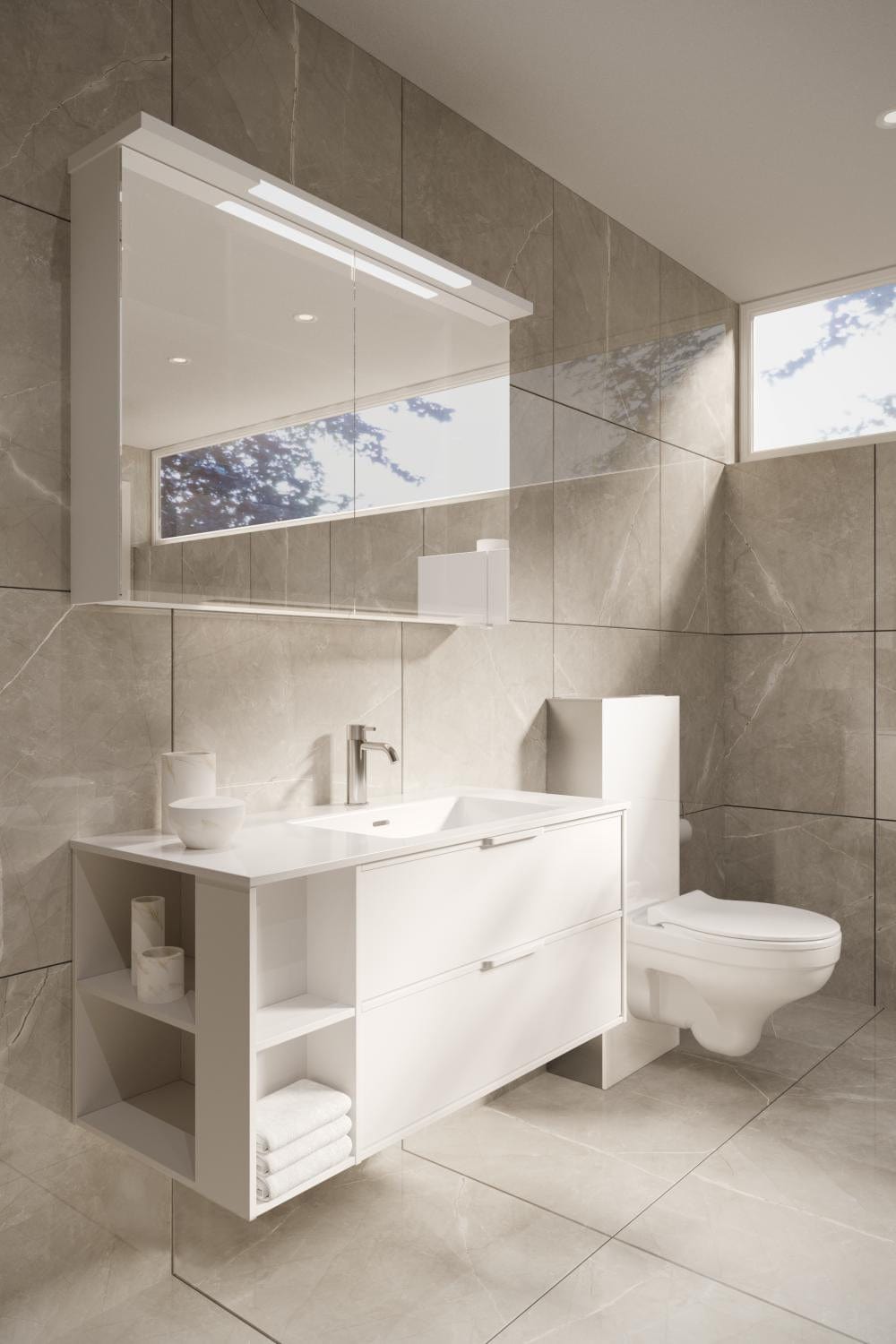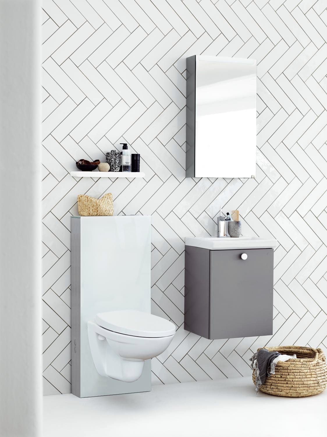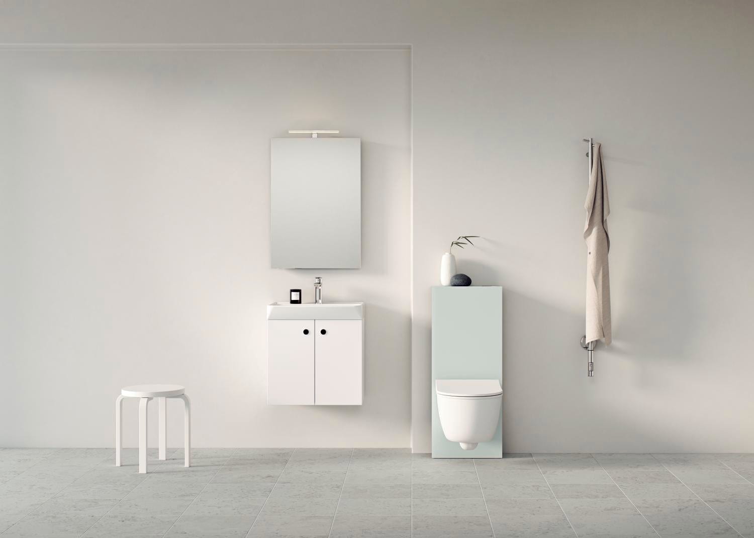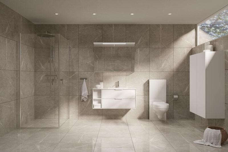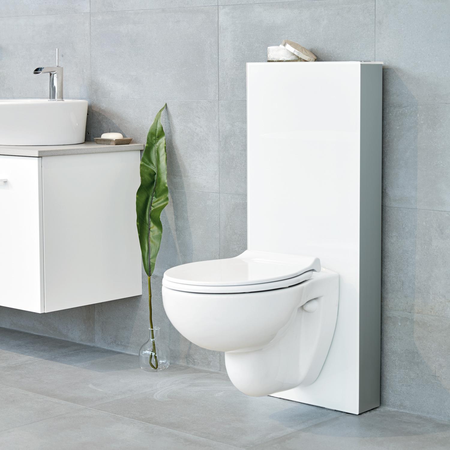 - Vegghengt toalett medfølger ikke (husk å velge et passende toalettsete)