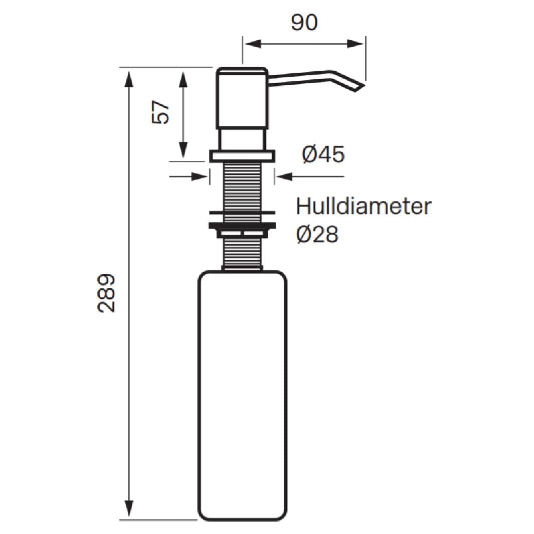Såpepumpe for montering i benkeplaten. Hulldiameter Ø28 mm.