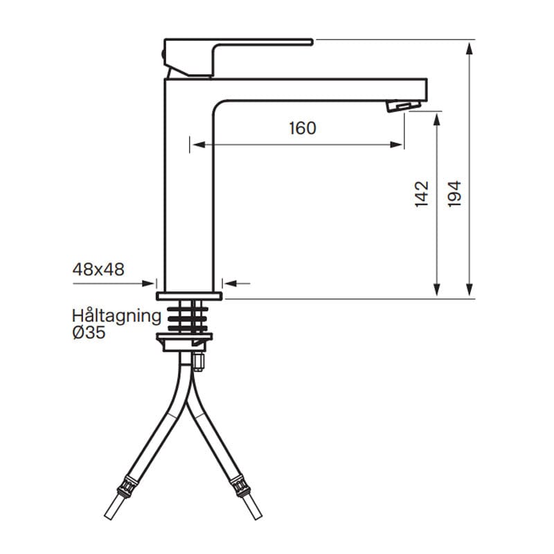 Servantbatteri uten oppløftventil, høy modell, kombiner med pop-up 74400.